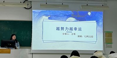 第二位宣讲者是来自20级师范班的汪苇同学,现已成功保研本校。作为自强自立标兵,汪苇学姐着重向我们分享了学习方面的经历。她提到,中文系的学习最重要的是找对方法,从巩固基础开始,不断强化阅读,最后到论文实践。