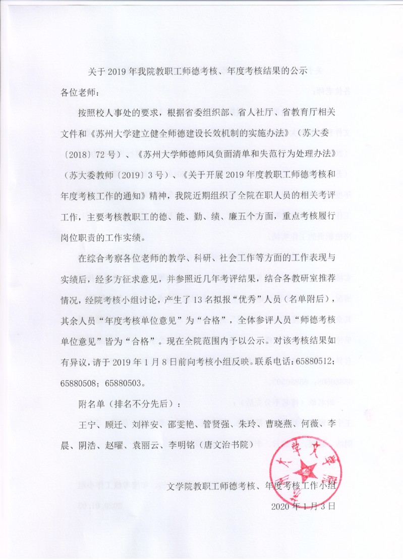 关于2019年水果派解说 教职工师德考核、年度考核结果的公示