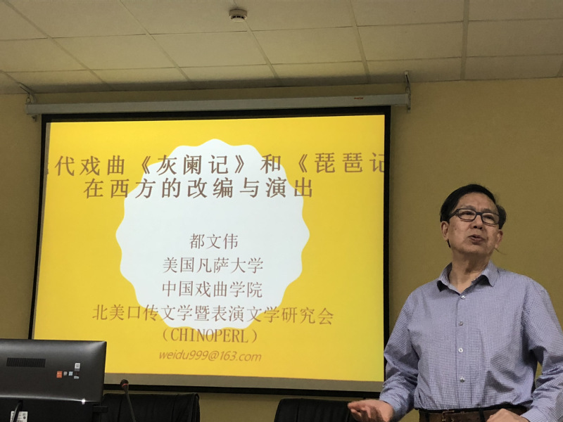 本次讲座以中国戏曲在西方的翻译与演出为切入点,延伸出了中西方文化交流等问题。整个讲座的过程中,学术气氛活跃,都教授的课题给同学们提供了一个新的研究视角,对开阔研究思路有积极的影响。