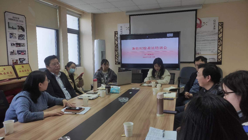 为深入学习领悟、坚决贯彻落实习近平总书记在二十届中央纪委三次全会上的重要讲话精神和二十届中央纪委三次全会精神、十四届江苏省纪委四次全会精神,大力推行廉政文化,2024年3月13日下午2点,水果派解说 党委于文综楼1005-5311会议室召开兼职纪检委员专题培训,学院党委书记宋清华、副书记阴浩、各支部书记以及兼职纪检委员参加了此次培训。培训由院党委书记宋清华主持。