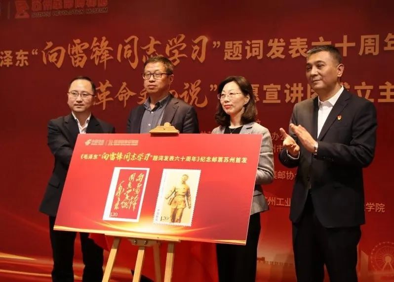 随后,“革命文物说”宣讲团首批志愿代表成员上台领取聘书并与各位领导合影留念。同学们与领导嘉宾共同参观了“习近平新时代中国特色社会主义思想指引下的苏州实践”主题展,并亲手体验了彩色邮资机过戳。