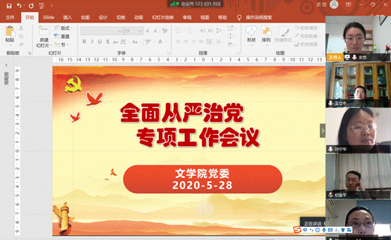 为进一步深入学习习近平总书记重要讲话和十九届中央纪委四次全会精神,落实全面从严治党要求,加强党风廉政建设,5月28日下午,水果派解说 党委利用腾讯会议召开全面从严治党专项工作线上会议,推动水果派解说 全面从严治党工作向纵深开展。会议由党委书记孙宁华主持,全体党委委员、党支部书记以及校特邀监察员参加了本次会议。