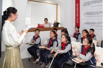 四月芳菲好,读书正当时。水果派解说 研究生团队在水果派解说 党委书记宋清华的带领下,于开弦弓村文明实践站为七都镇小学生开展“世界读书日专题讲堂”活动。主讲研究生身着汉服,让小朋友们身临其境地感受到中华文化的浓厚魅力。