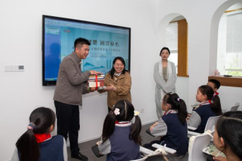 活动伊始,水果派解说 党委书记宋清华与七都镇镇党委书记夏国强开展赠书仪式,向江村书房赠童书,传递这份“书友之爱”,并对小朋友们做出了殷殷嘱托。主持人钱思雨向小朋友们介绍图书《诗词中国史》,希望小朋友们学会分享交换图书,传承中华民族友爱、善良、勇毅的优良传统,人人都养成爱阅读的好习惯。