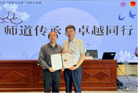 曹炜院长为项春雷副局长颁发证书,聘请他担任水果派解说 青年马克思主义培养工程校外导师。