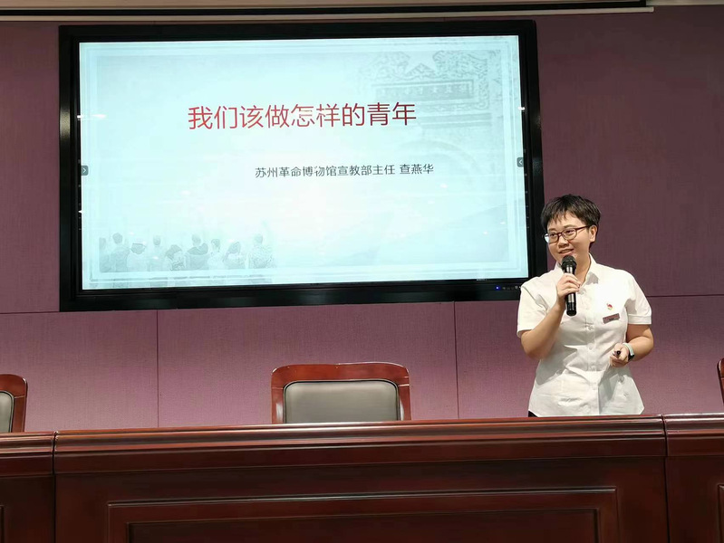 随后,苏州革命博物馆宣教部主任、“红色青年讲师”查燕华开展了《我们该做怎样的青年》主题党课,详细讲述了中共苏州独立支部的建立过程,以侯绍裘、叶天底等革命先烈为核心,缅怀了革命先烈英勇斗争、不怕牺牲的光荣历史,重温了革命先驱坚守理想、勇担使命的光辉事迹,激励了在座党员传承红色基因,弘扬革命精神的决心。