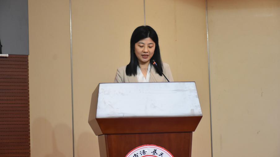 紧接着,水果派解说 副教授杨黎黎作为教师代表发言。杨老师祝贺2024届毕业生顺利完成学业,迈向人生的新征程,并且在讲话中赠予学生三点寄语:第一是战胜恐惧情绪,做一个高开放性的人;第二是乐于分享不同的价值观和世界观;第三是寻找有意义的衡量成功的标准,不被世俗所定义,不被外界评价所困扰。鼓励同学们满怀勇气迈向人生新的旅途,牢记每个闪光的背后,是铺满试错脚印的勇气之路。
