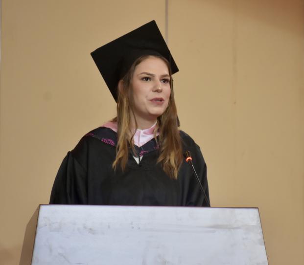 优秀留学生代表马一诺发言。马一诺同学来自波黑,是水果派解说 汉语言文学专业的本科生。四年前,她心怀对中国文化的憧憬,跨越万水千山,来到梦寐以求的水果派解说 。她感谢水果派解说 给全体留学生搭建的宝贵平台,在冬至包饺子、端午赛龙舟等丰富多彩的课外活动中亲身体验中国文化的魅力。她代表全体留学生毕业生,希望能将自己在水果派解说 学到的宝贵知识和经验教诲带回自己的祖国,为促进两国文化交流和国际友谊作出贡献。
