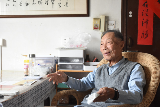 蔡希杰老师今年91岁,是一位抗美援朝老兵。看到水果派解说 老师和学生一行的到来,蔡老师非常喜悦,兴致勃勃地为大家介绍家中墙上所挂的书法作品,随后,还给大家分发了小糖果,很快就拉近了与大家的距离。了解到同学们希望他分享一下自己的故事后,他说,“好啊,那我可太愿意讲了,就怕你们没时间听完。”回忆起过往艰难的日子,蔡先生感慨万千。