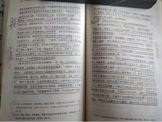 在分享成长经历的过程中,蔡老师拿出了许多珍贵的材料供大家学习,其中包括他的党史学习心得笔记。从照片中可以看出,蔡老师在《中共党史》的书上做了密密麻麻的标记和批注。