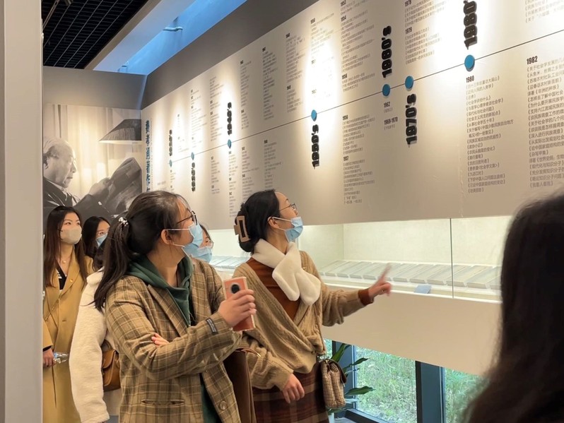 吴地风雅,千年流芳,同志们在意犹未尽的感慨中,前往费孝通江村纪念馆参观学习。从入口处到纪念馆大门,有二十六块地砖,分别铭刻着费孝通先生二十六次访问江村的具体年份。展厅中展示了费孝通先生社会调查的大量珍贵图片和调研学术成果。费孝通先生用一生的精力揭示社会生活和经济发展的规律,因势利导,与时俱进,志在富民,这给同志们留下了深刻印象。从费孝通先生开始,在一代代人的奋斗下,新时代的江村已经不再是地理意义上的开弦弓村,而是作为世界认识中国农村的一个窗口,被赋予了民族标志,成为新时代中国农村的形象。这让在场同志们深刻体会到了费孝通先生作为中国社会学泰斗级人物为人类的文明进步所作出的伟大贡献。