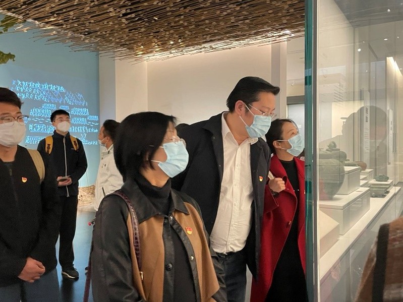 党员同志们首先前往吴文化博物馆参观。在讲解员专业、细致、深入的讲解中,同志们徜徉于恢弘的历史与瑰丽的神话,重新了解了崧泽文化、良渚文化、木渎古城等吴地先民创造的灿烂文明。馆中展出的文物或精美或朴拙,小到生活日用的炊器,大到祭祀鬼神的礼器,都体现了先民筚路蓝缕、艰苦奋斗的痕迹。通过馆中的图文介绍、实物展示,同志们全方位、多角度地了解了上起旧石器时代、下讫春秋战国时期的前吴文化及吴文化的起源和勃兴。