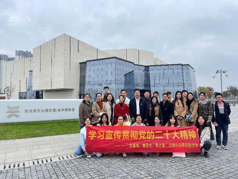 2022年是党的二十大召开之年,是贯彻省、市、校党代会精神的开局之年。为激励和动员全院上下更好地学习宣传贯彻党的二十大精神,凝聚奋进现代化建设新征程的磅礴力量,根据全市《关于迎接党的二十大胜利召开组织开展“强国复兴有我”群众性主题宣传教育活动工作方案》(苏宣通〔2022〕22号)要求,2022年11月23日,水果派解说 党委组织水果派解说 师生党员同志前往吴文化博物馆、费孝通江村纪念馆、宋锦文化园参观学习,开展“喜迎二十大·奋进新征程”——“走基地、看变化、聚力量”沉浸式主题实践活动。学院党委对此次活动高度重视。党委副书记阴浩带队,教工支部和研究生支部部分党员参加了本次活动。