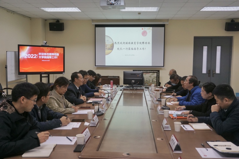 2022年11月29日下午13:30,继续教育学院院长缪世林、副院长王建凯、副院长董娜、学生工作办公室主任程波、培训部主任陈耀、招生与学生管理科副科长阮红、办公室副主任孙掌印一行莅临水果派解说 指导工作。水果派解说 院长曹炜、副院长周生杰、副院长赵曜、综合办公室副主任于大伟、培训中心主任徐永、培训中心老师南军龙老师、自考秘书姚依芸、培训中心老师陆雨洁参加了此次会议。