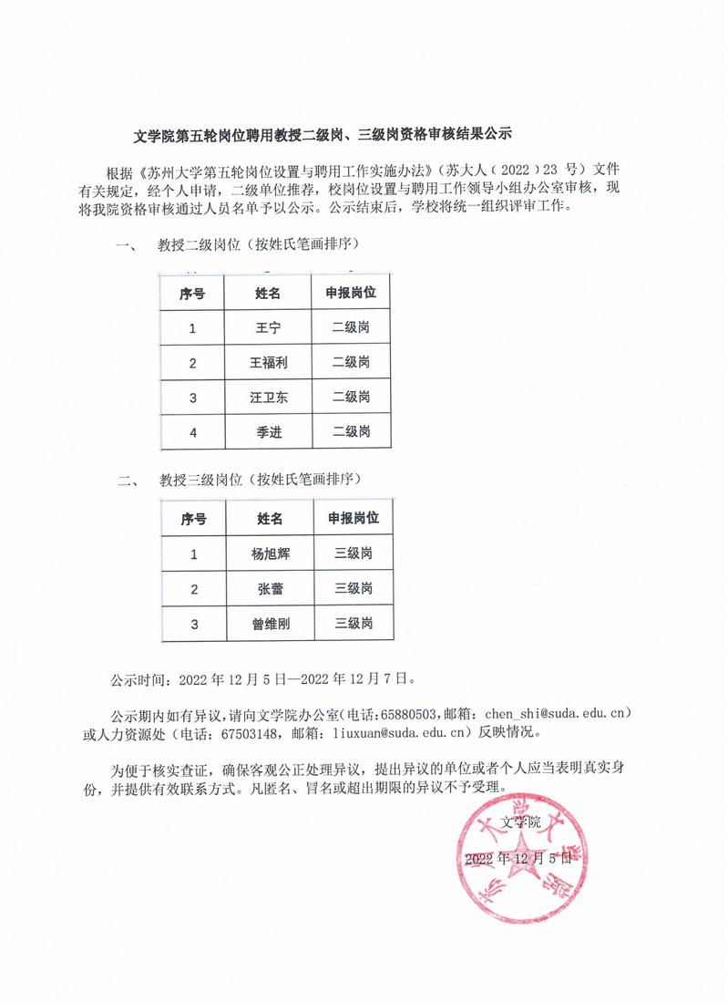 水果派解说 第五轮岗位聘用教授二级岗、三级岗资格审核结果公示