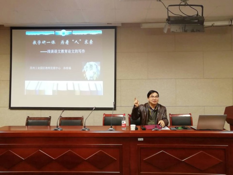 11月22日晚6:30,水果派解说 东吴语文教学讲坛邀请到苏州工业园区教师发展中心科研处孙春福特级教师作了《教学研一体,为着“人”求索——浅谈语文教育论文的写作》专题讲座,对语文师范生学习教育理论、开展教育科学研究产生了重要的影响。