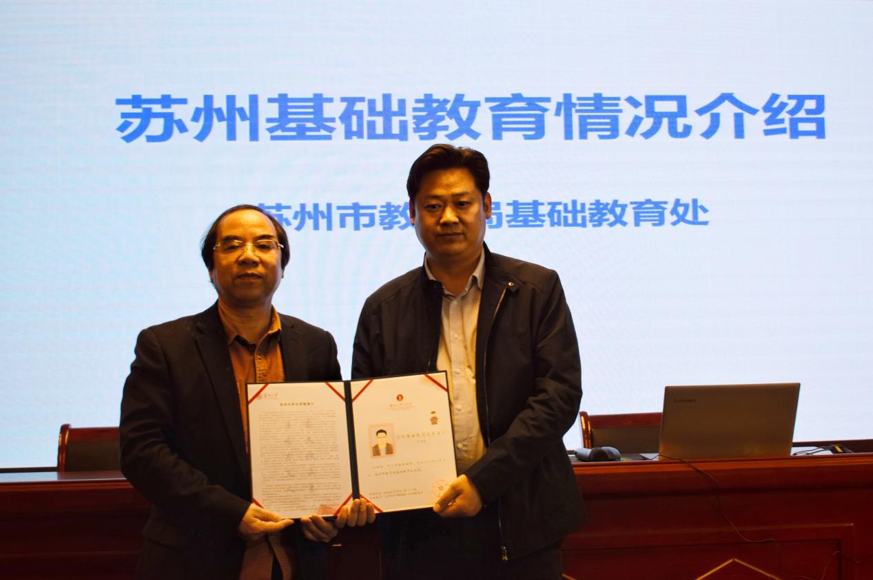 最后,王双全处长向同学们分享了苏州素质教育概况,指出两点重要举措:一方面,遵循教育规律,提高教育质量;另一方面,运用科学方法,提高教育质量。