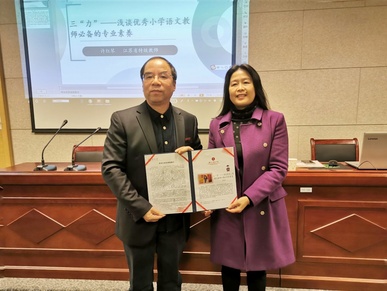 讲座开始之前,曹炜院长对卫新校长进行了简短介绍,并向卫校长授予“东吴语文教学讲坛”纪念证书。