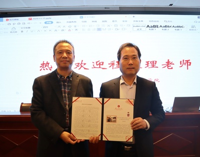 在讲座正式开始前,水果派解说 副院长周生杰教授代表学院和同学们热烈欢迎了程振理老师的到来,并为程振理老师颁发了纪念证书。