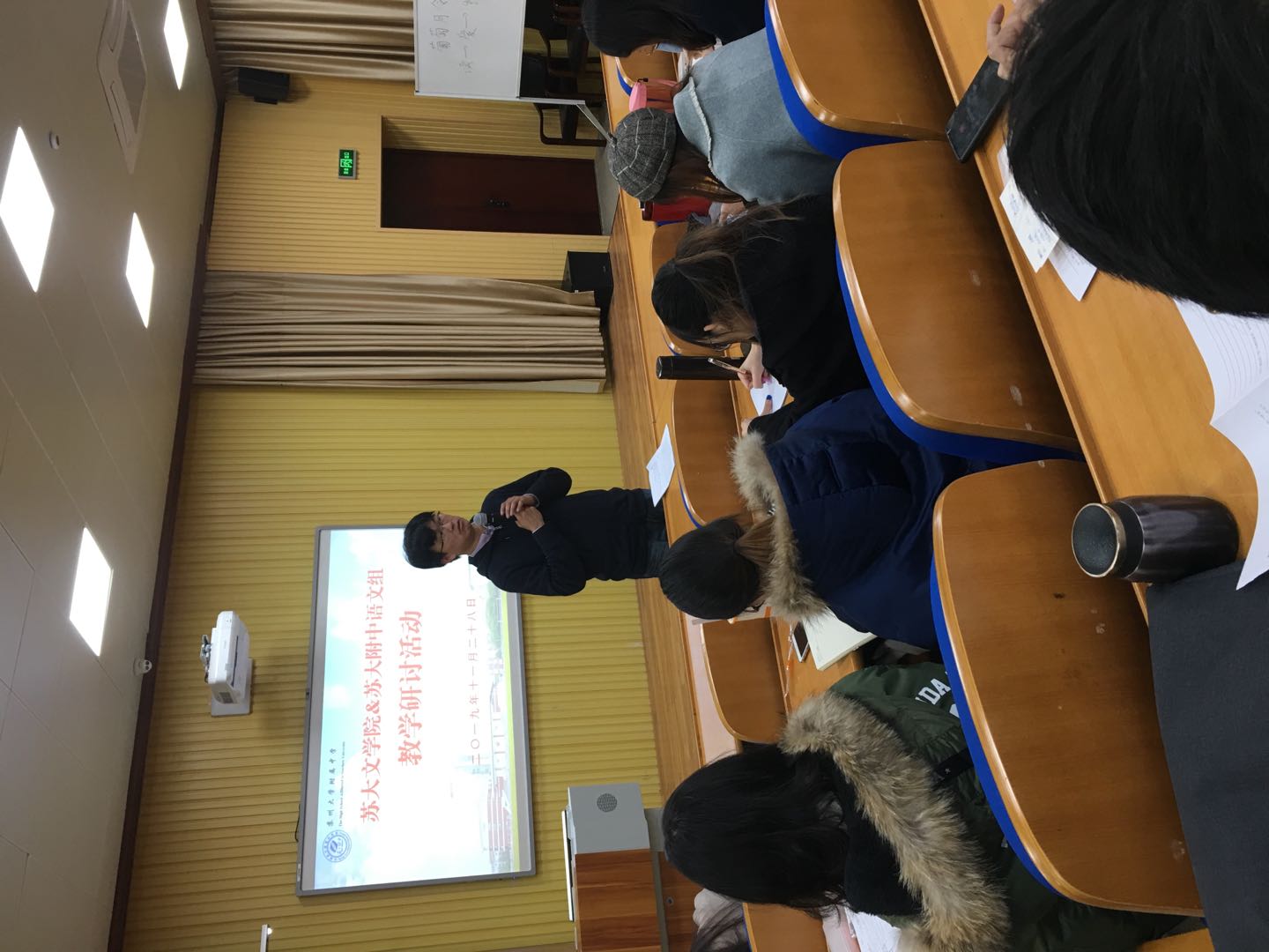 教育研习活动,也是由两部分组成,一是安排在第一学年的研习,二是第二学年教育实习后期的研习。第一学年研习内容的安排,主要是组织学生参加苏州市语文教研活动及两年一次的苏州市语言学会举办的语文教学名师教学实践展示研讨会等。近几年主要参加了在金鸡湖学校、苏大附中举办的苏州工业园区语文教研活动及2017年、2019年苏州语言学会举办的语文教学名师教学实践展示研讨会等活动。